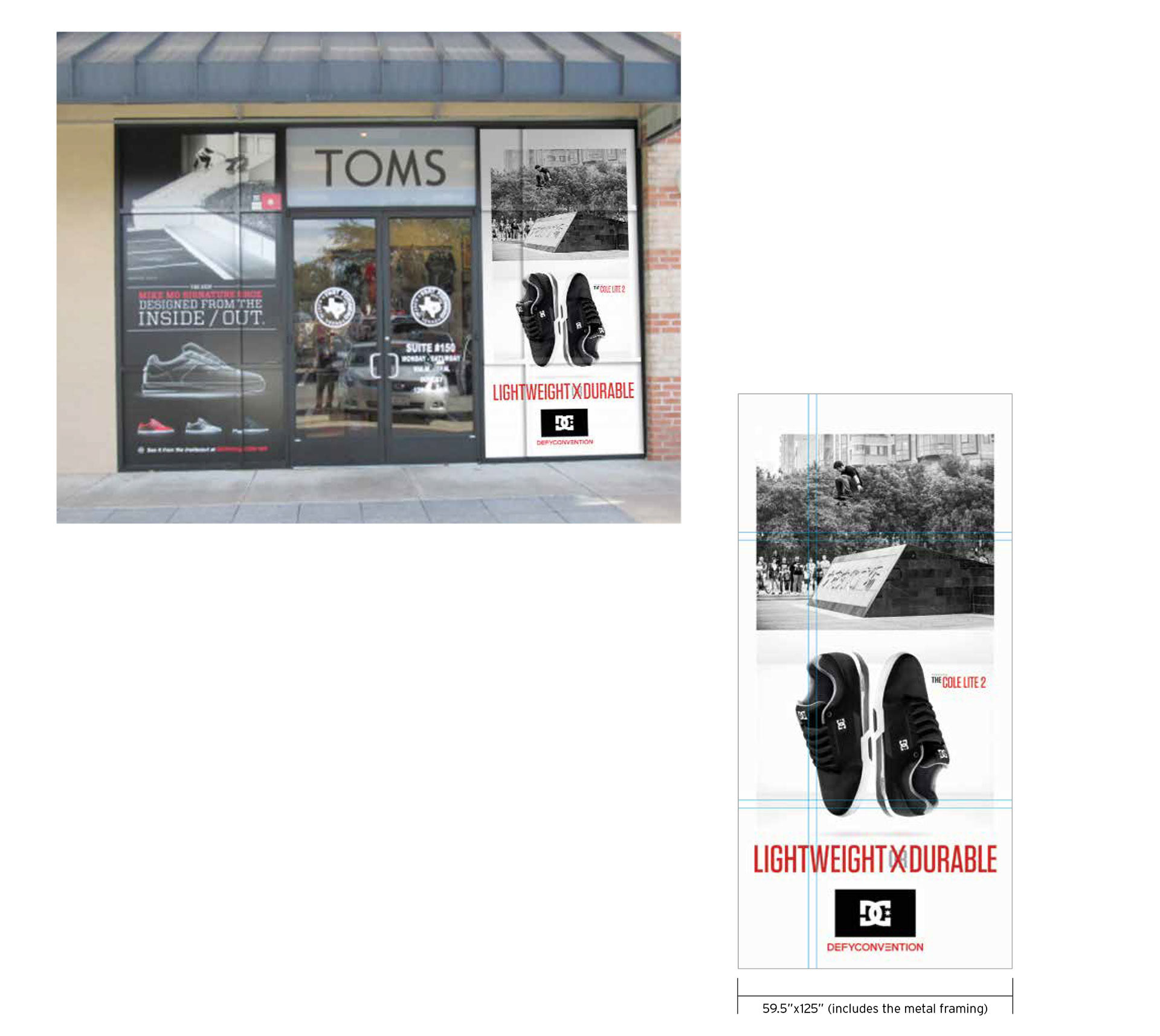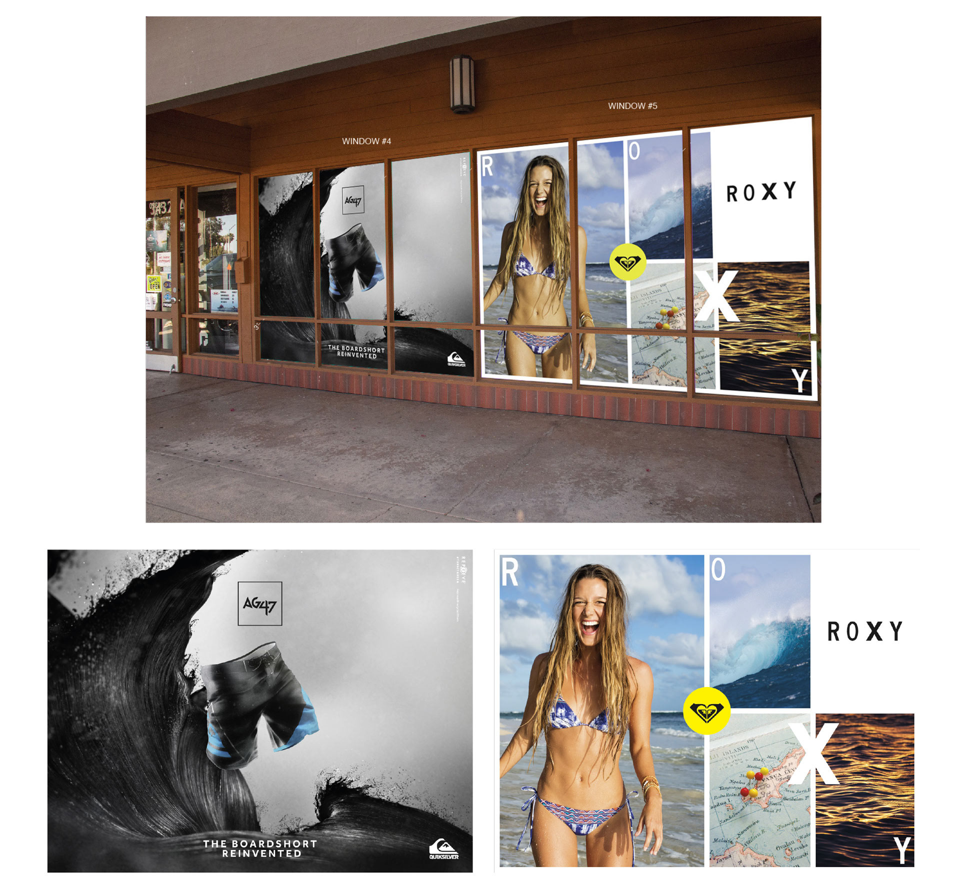 Examples of window campaing rolls outs I created for Dc Shoes, Quiksilver, and Roxy